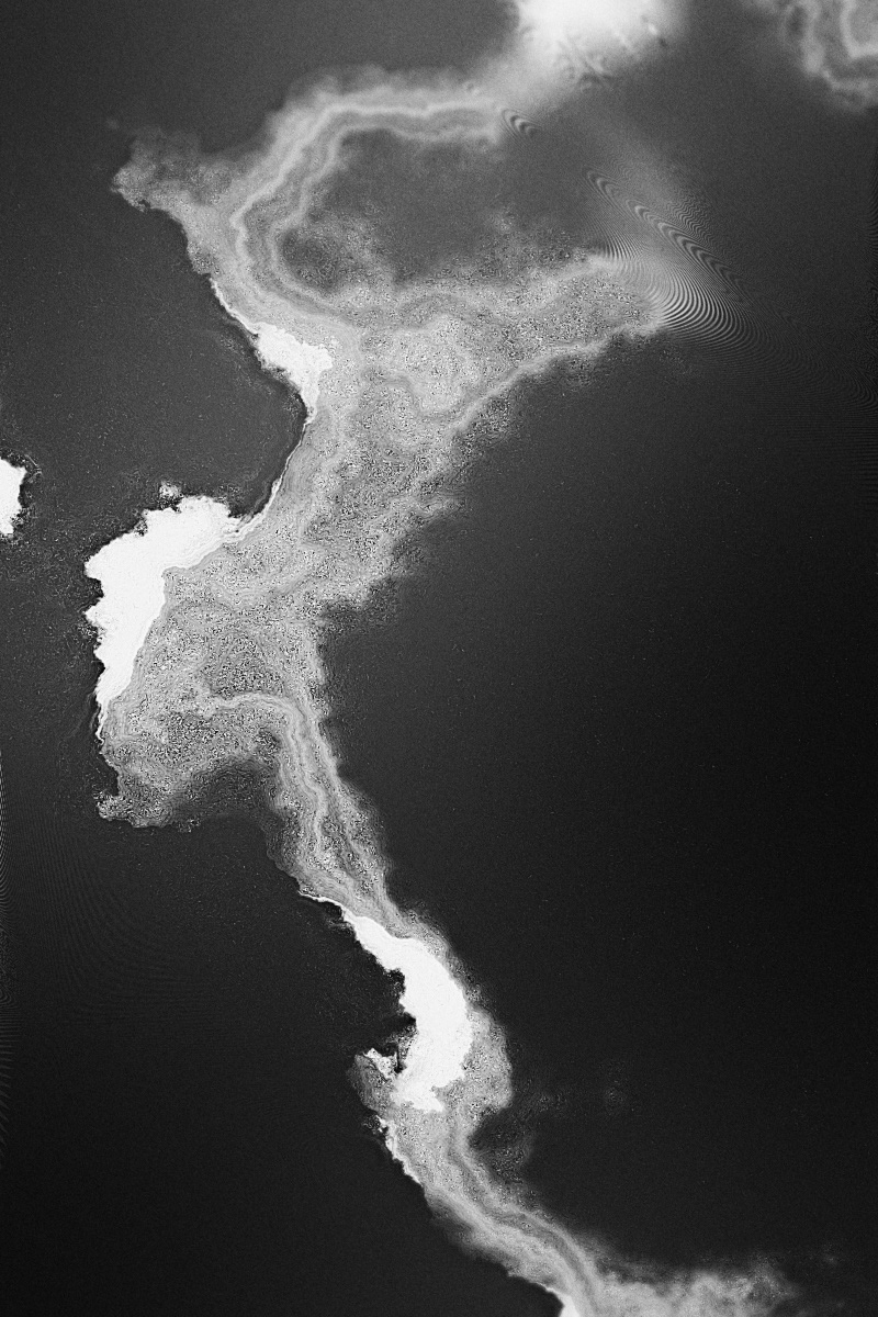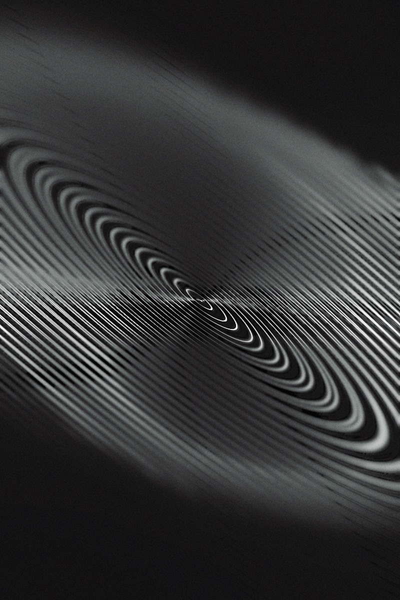 A recorded sound is ran through a set of algorithms, which in turn create a visual representation of that recording over time using attributes unique to that recording. The only elements on some renders (outside of the algorithms) are a finishing film grain and simulated focal blur from 3D rotation of the original rendered image.